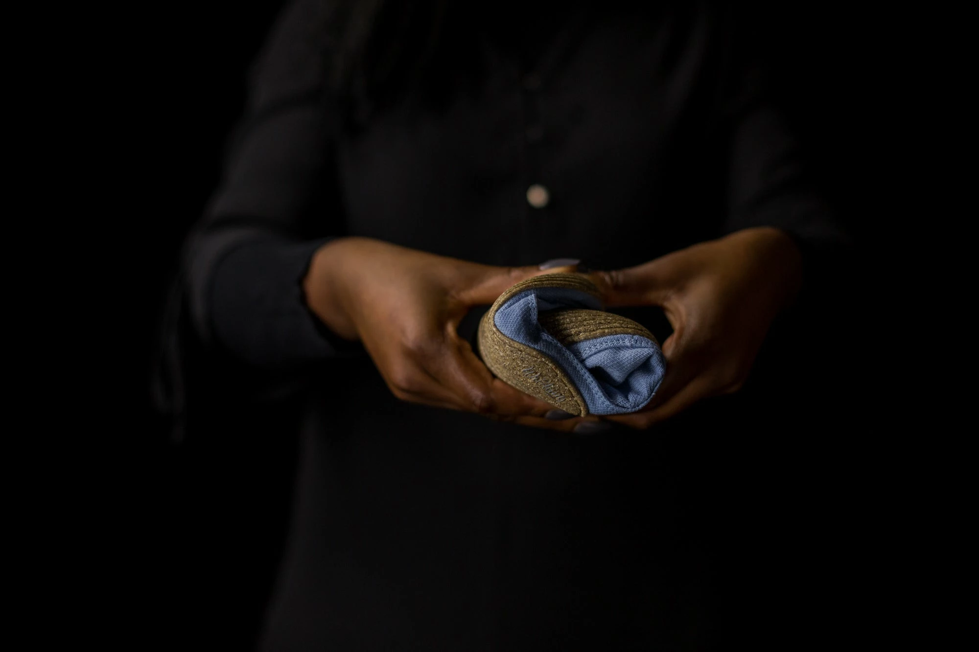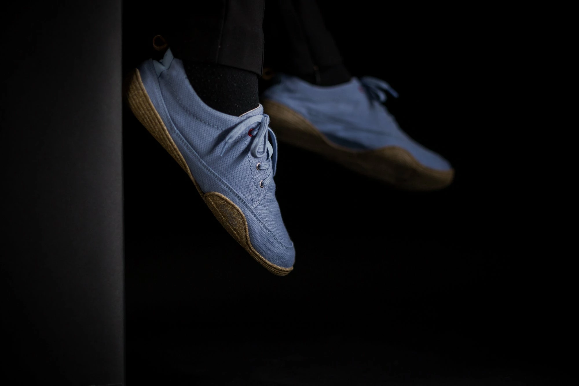 Die Materialien des himmelblauen Oberstoffes stammen aus kontrolliert biologischem Anbau. Das Leinen wird aus Europa bezogen und sorgt mit einem Anteil von 33 % zudem für ein angenehmes Fußklima.