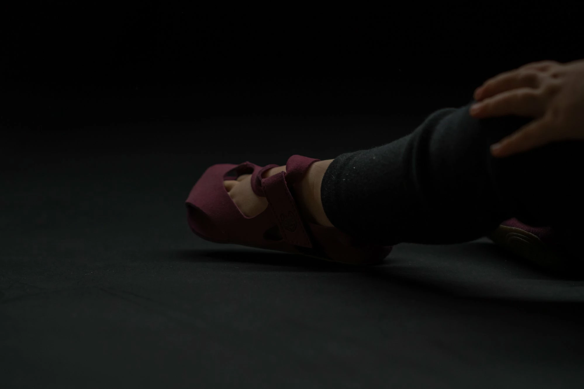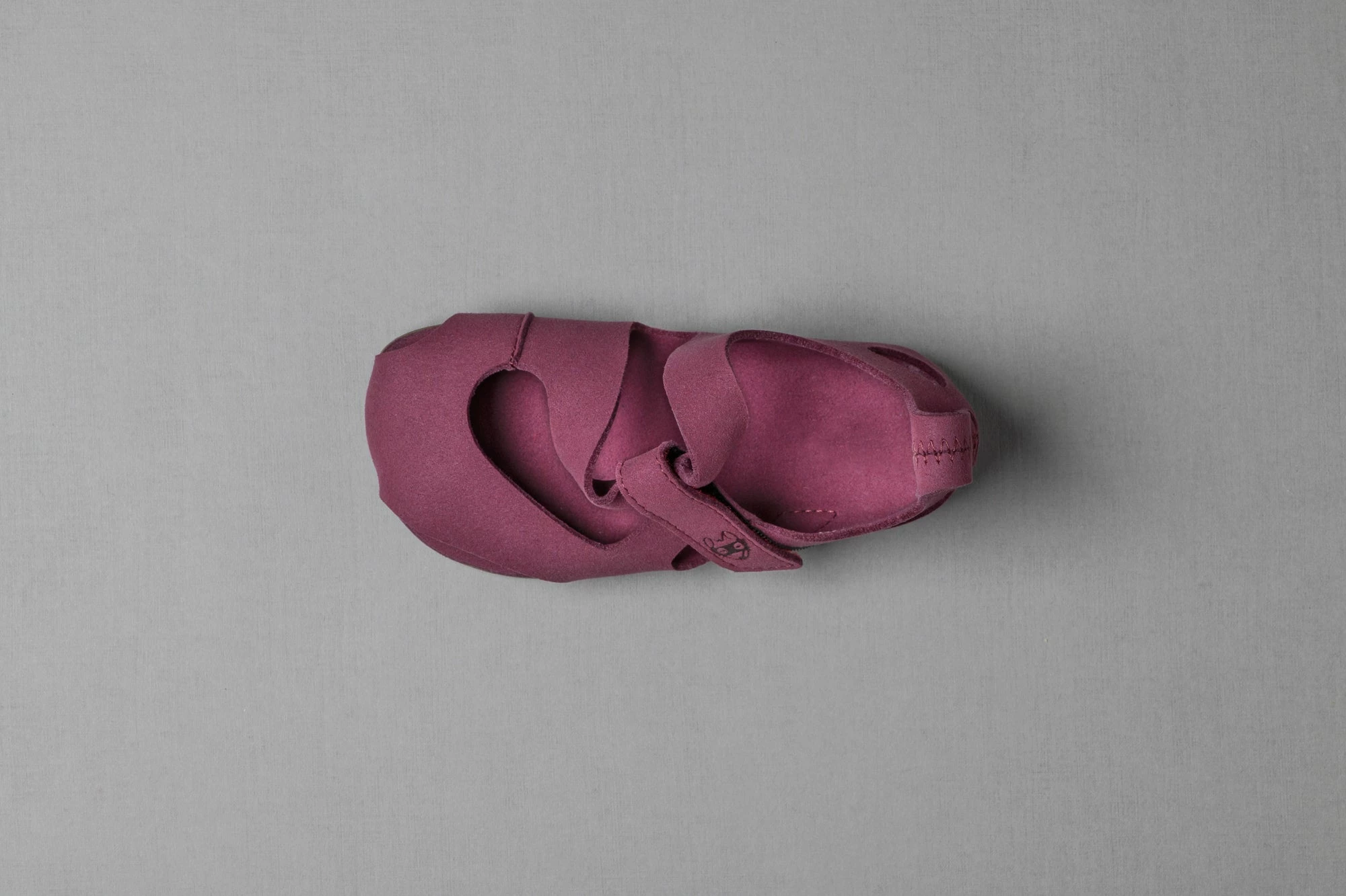 Fuß und Sandale gehen bei der Pflaumenfeder eine optimale Verbindung ein. Durch den Riemen am großen Zeh sorgt der Windlass-Mechanismus für sicheren Halt.