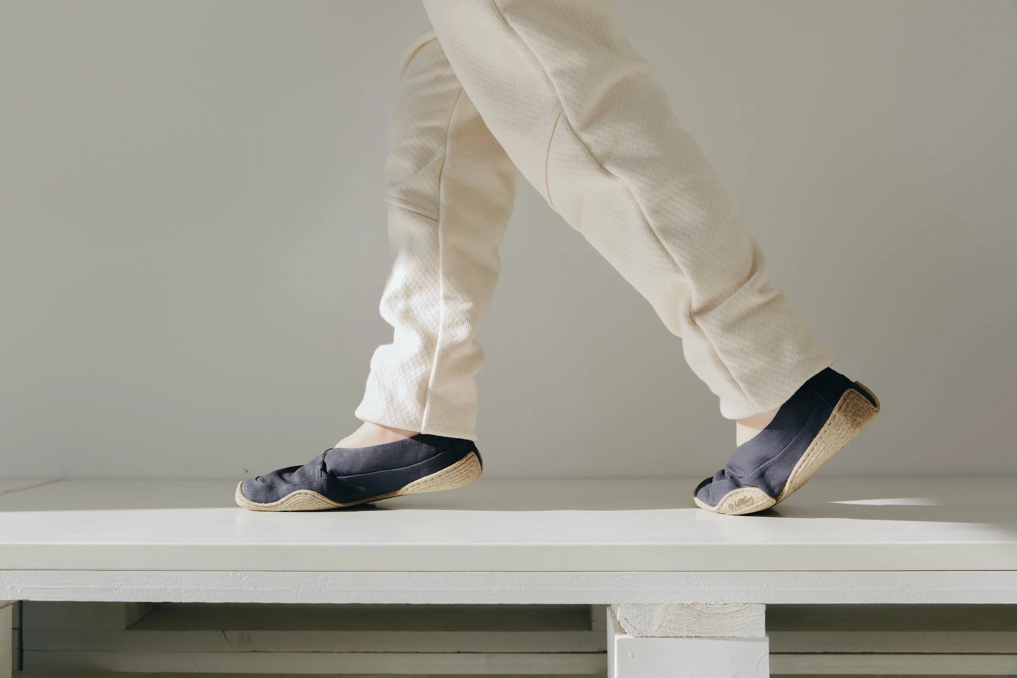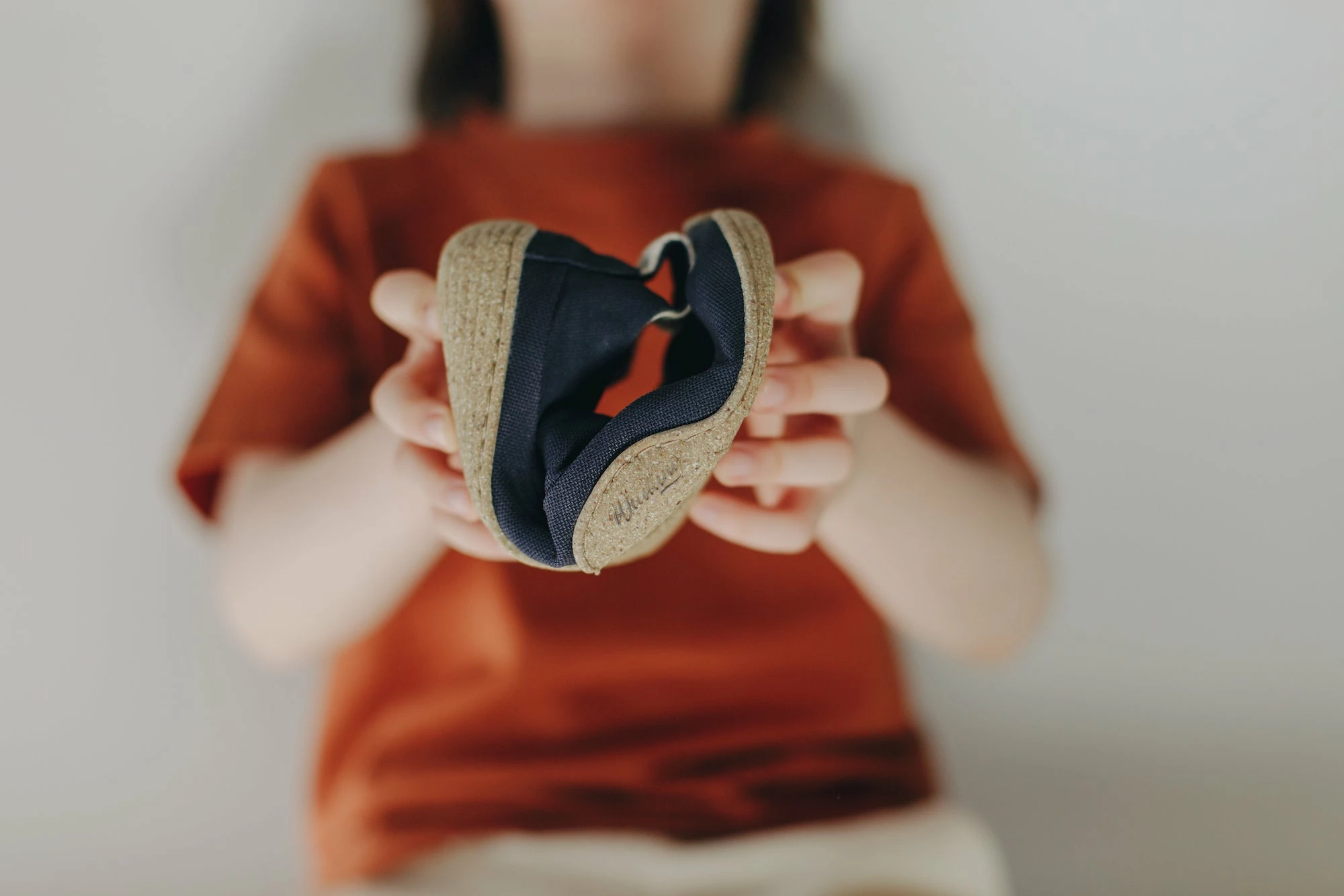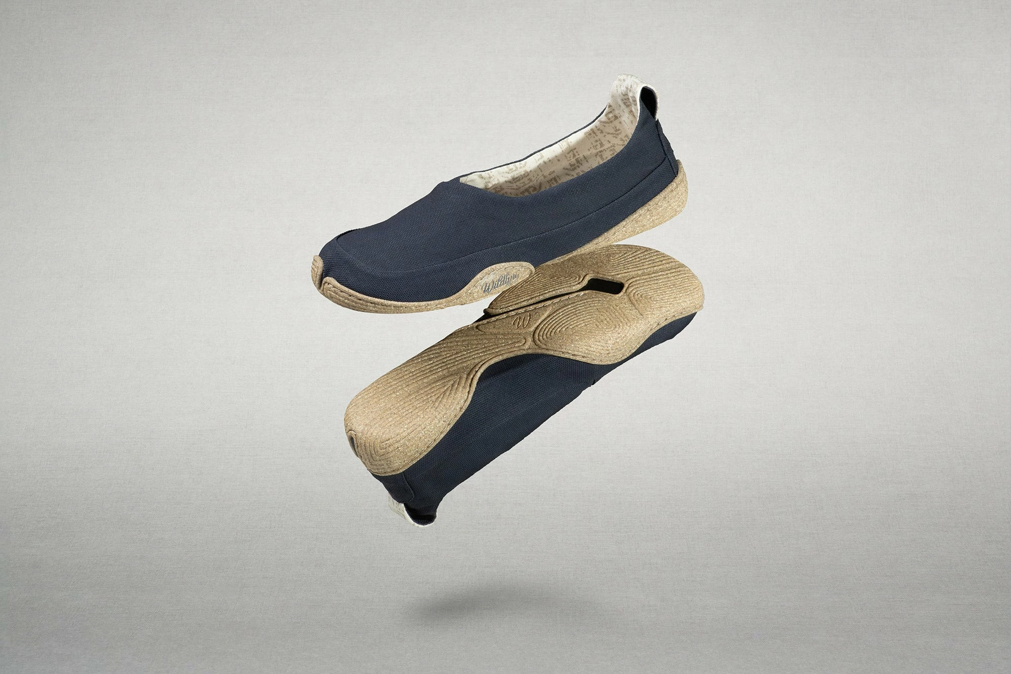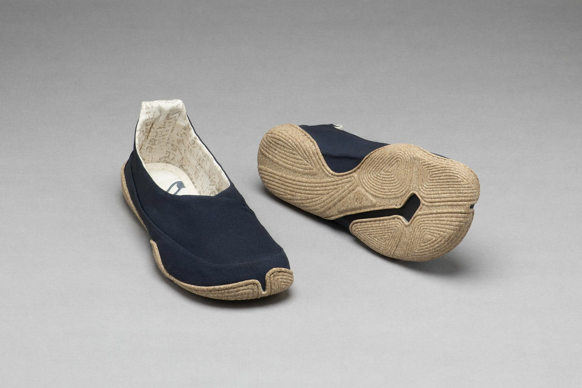 Das unisex Design kommt ganz ohne Mikrofaser aus. Der Oberstoff aus Washi scheint wie um den Fuß herum gelegt.