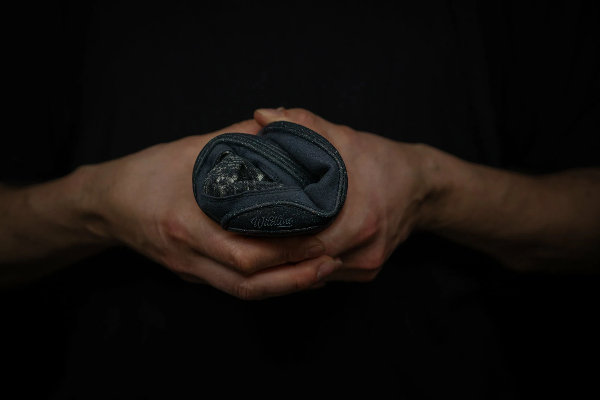 Der Print des Saker ist inspiriert von den Landschaften Kirgistans, den weiten Seen und ausdrucksstarken Strukturen der Felsen und Berge. Das Design bringt diese freie Natur in einen urbanen Kontext.